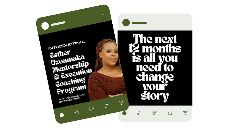 The Esther Uzoamaka Career Mentorship & Vision Execution Program is where you’ll master the life-shifting principles to quit procrastinating and start seeing real improvements in your life and career.